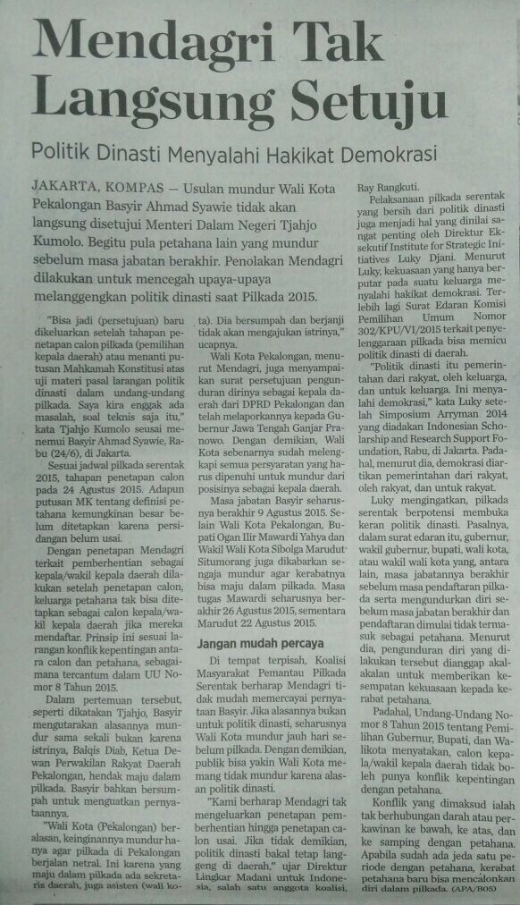 Kompas and Koran Jakarta , 25 June 2015